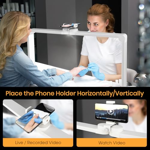 - ¡¼Built-in Phone Holder for Multitasking¡½ The integrated top mount securely holds phones vertically/horizontally to record manicures, livestream, or binge-watch shows while charging. Your nail desk lamp doubles as a media station!