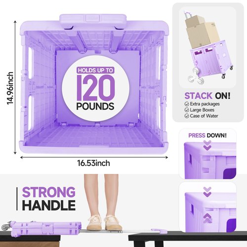 Foldable Rolling Crate for Stair Climbing : Handcart for Shopping Teacher Laundry (Lavender)