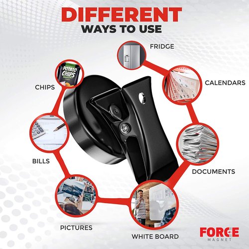 Force Magnet- Magnetic Clips Pack of 10 - Premium Quality Super Strength Magnet Clips Heavy Duty with Anti Scratch Pads - Make Notes, Remember Appointments and Hang Keys on Metal Surfaces(Black)