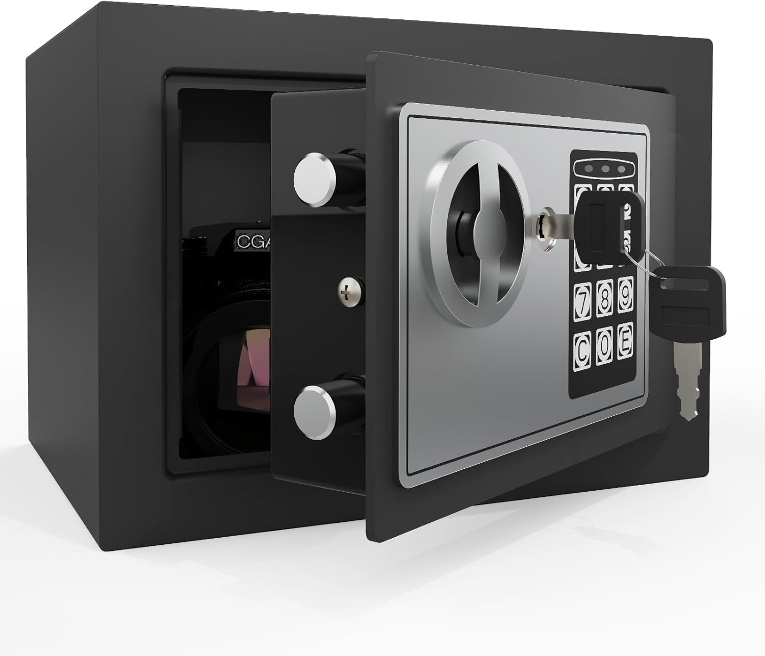 - ✅【Enhanced Security】Our safe box is built with high-strength SPCC steel, featuring a reinforced thick door, two 20mm bolts, and concealed pry-resistant hinges. This combination ensures superior durability and reliable protection for your most valuable belongings.