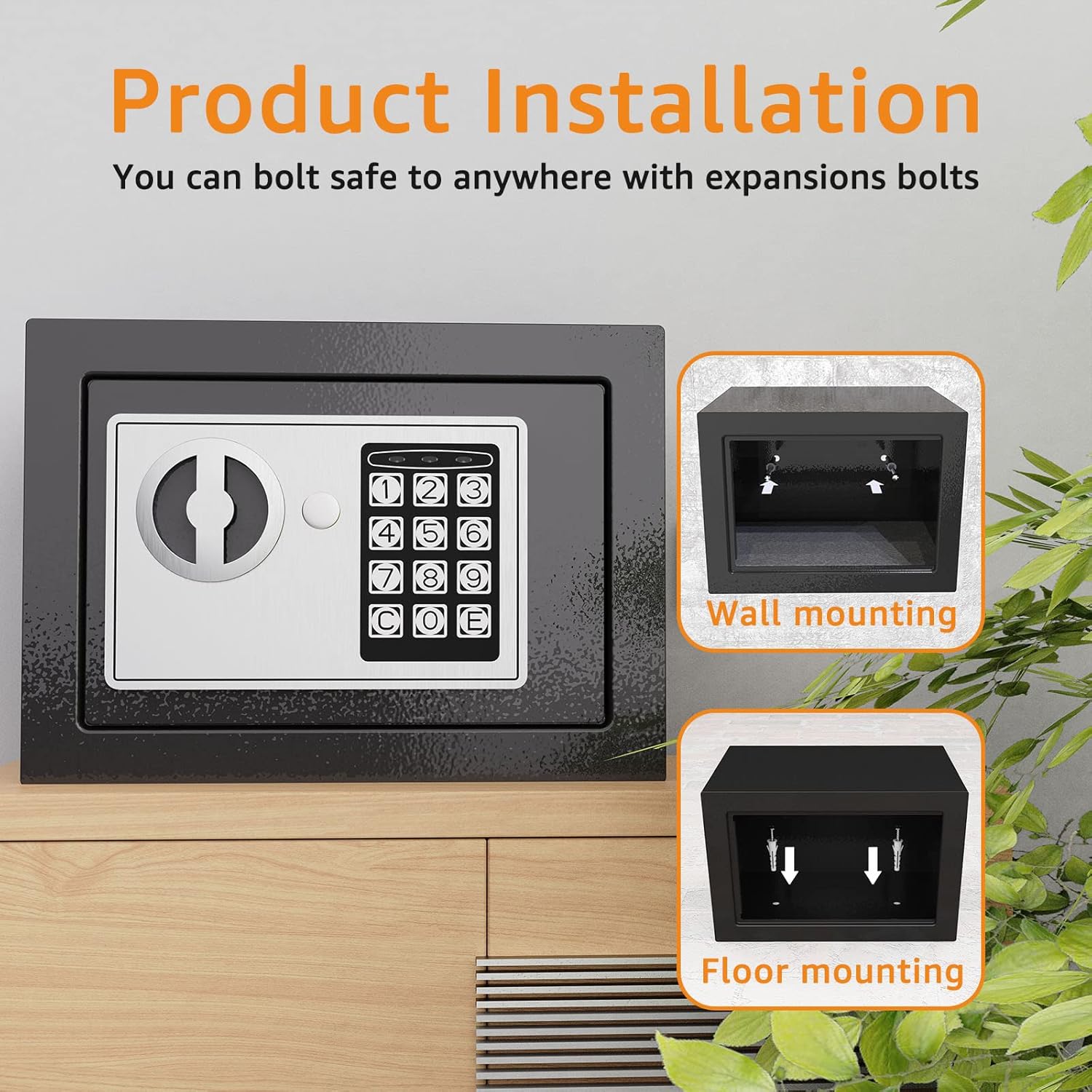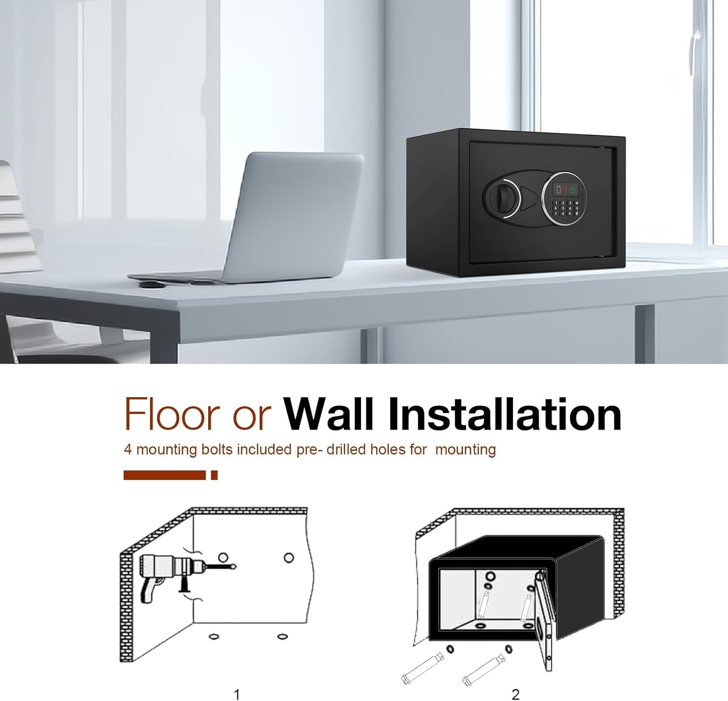 - ✅【Convenient Installation Options】Measuring 11.81"D x 14.96"W x 11.81"H, our safe can be easily mounted in your home or office. It comes with pre-drilled holes on the back and bottom of the box, along with expansion screws for simple wall or floor installation.