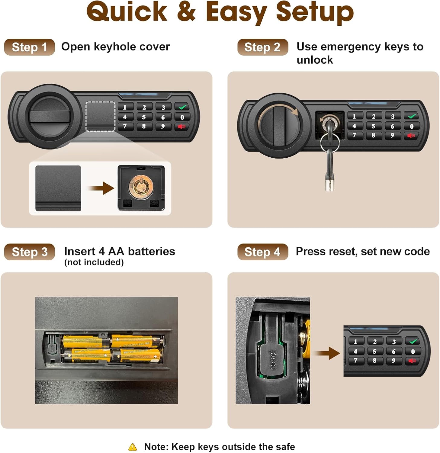 - ✅【Package & Service】The package includes 1 safe box, 2 emergency keys, 4 mounting bolts, 1 scratch-resistant carpet, and a user manual. At GoldenKey, we offer 24/7 customer support to promptly assist with any questions or concerns. Trust our safe to protect your valuables with enhanced security features and ease of use.