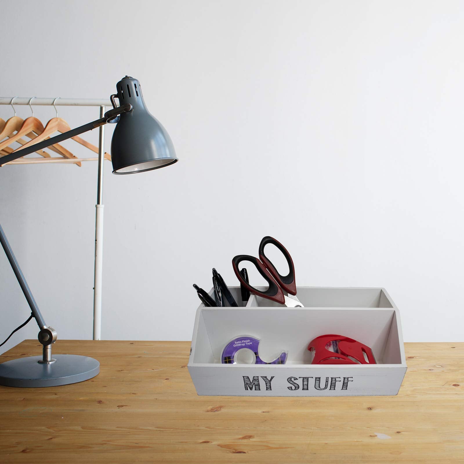 "My Stuff" Rustic Wooden Office Desk Organizer & Mail Rack with Distressed Wood Finish 11" X 6" X 4" (White)