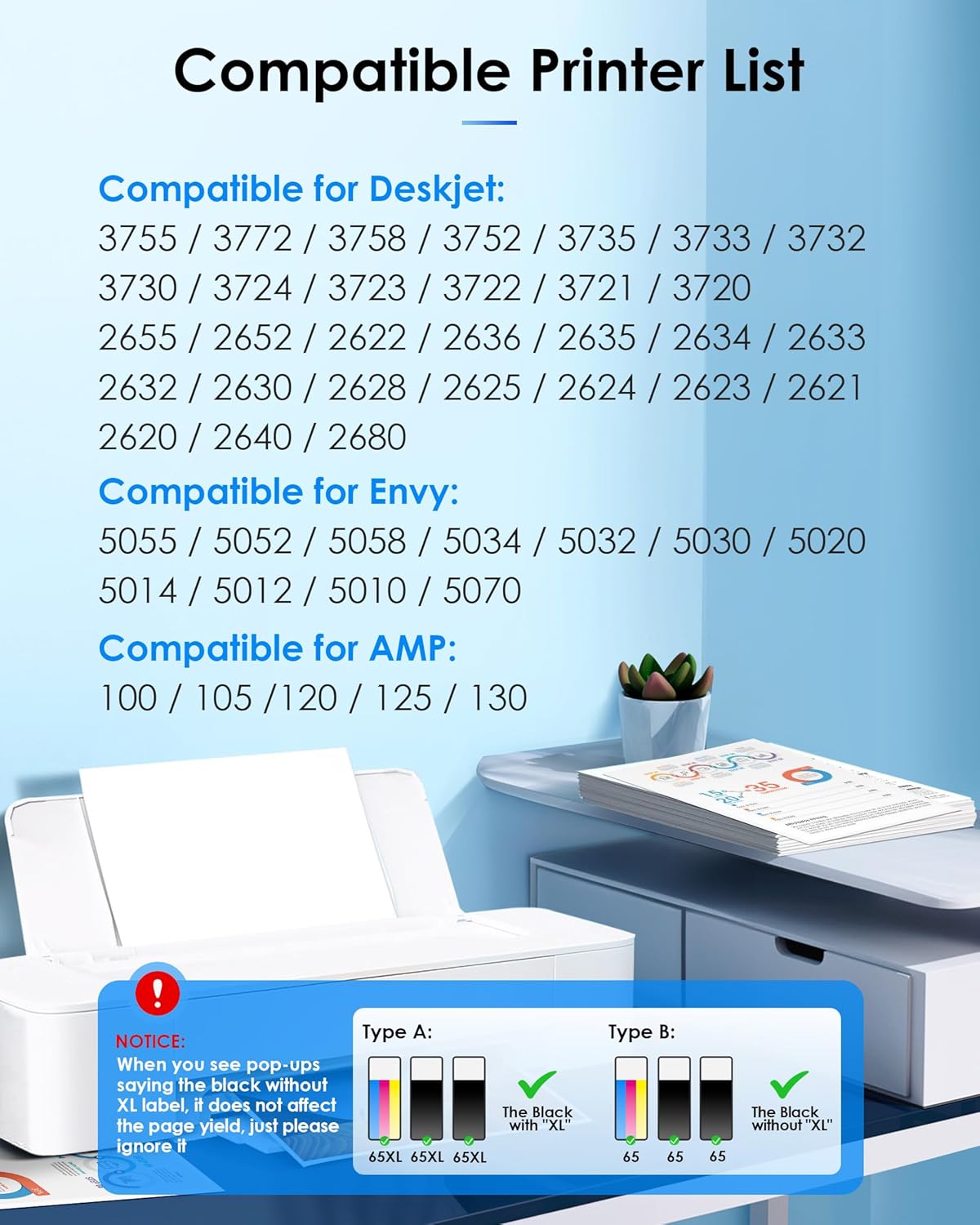 All TECKKIN for hp ink 62 with the latest upgraded high accuracy chips, ensure 100% compatibility with your printer and perfectly avoid printer damage.